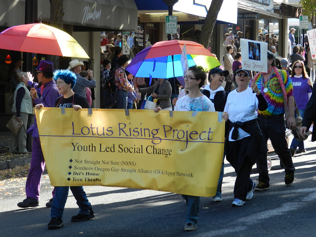 It wasn't a very big parade and there wasn't a large draw of people lining the parade route (partly due to inclement weather) but today's SO PRIDE was huge on spirit! I love the sense of community in a town such as Ashland, where everyone is accepted and embraced. I will let the photos speak for themselves. Enjoy!